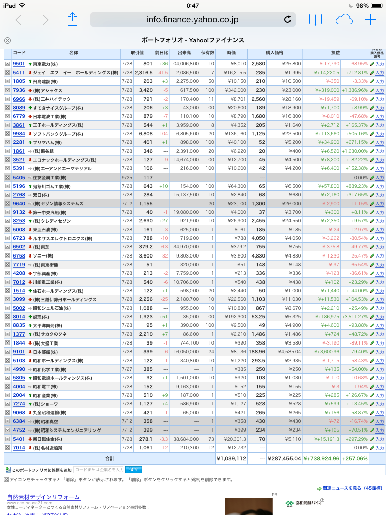 豊嶋康子ミニ投資【合計】___¥1,039,112(+257.06%)