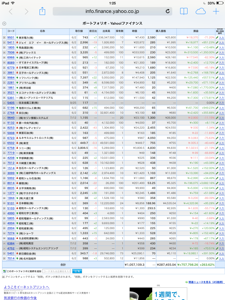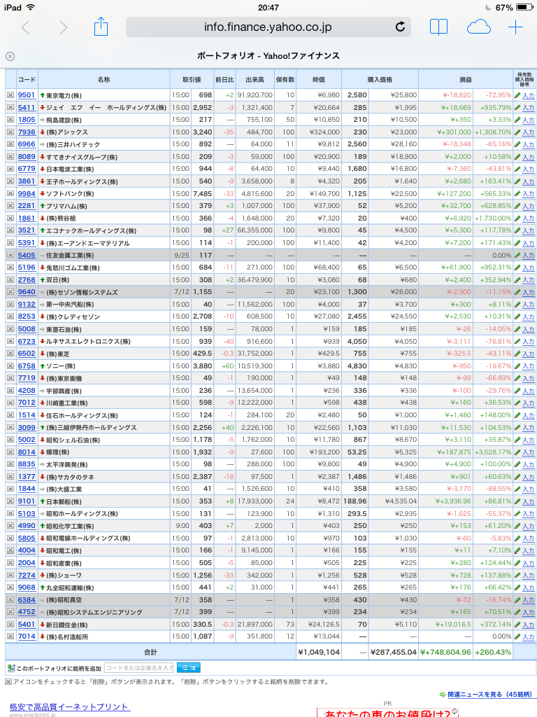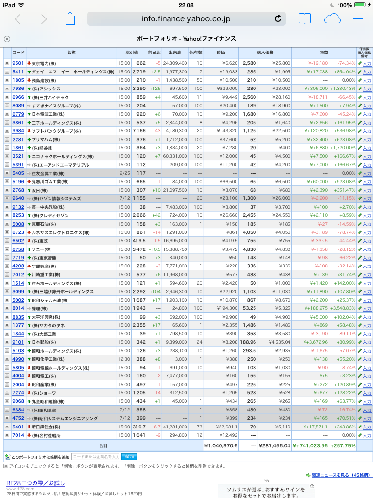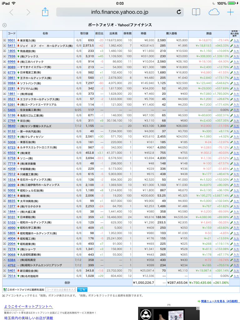 豊嶋康子ミニ投資【合計】___¥1,049,104(+260.43%)