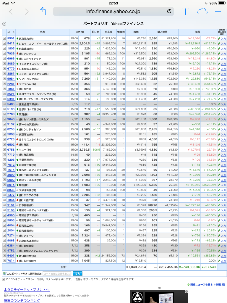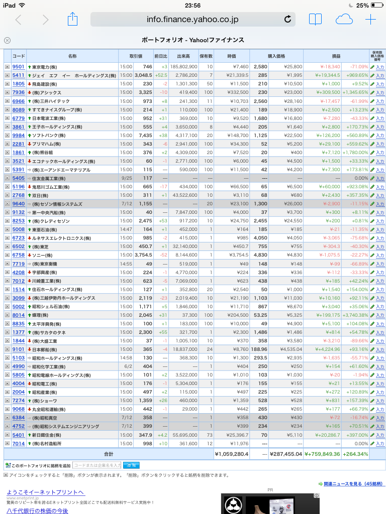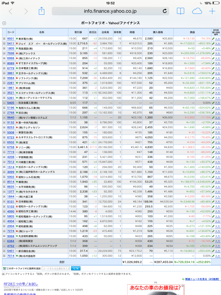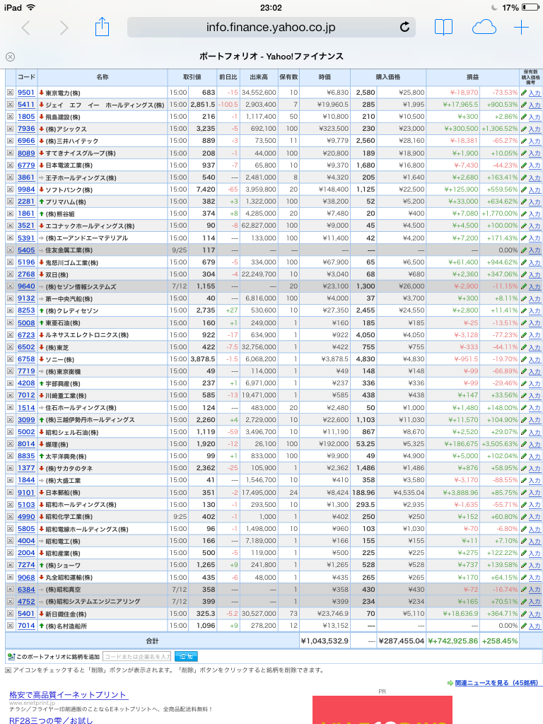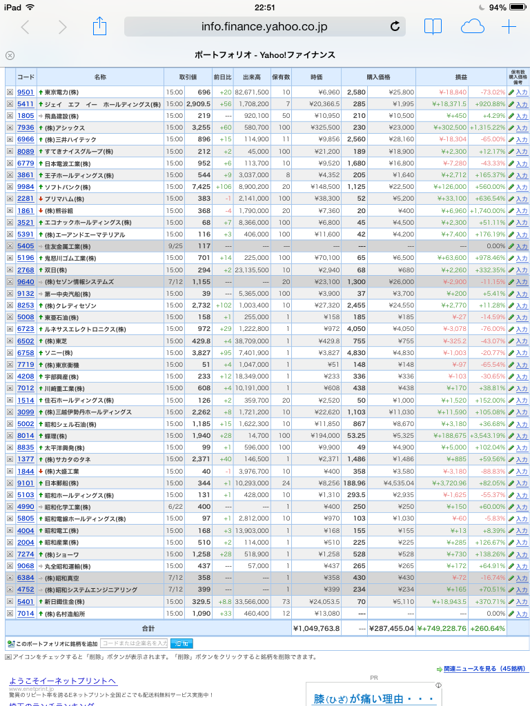 豊嶋康子ミニ投資【合計】___¥1,049,104(+260.43%)