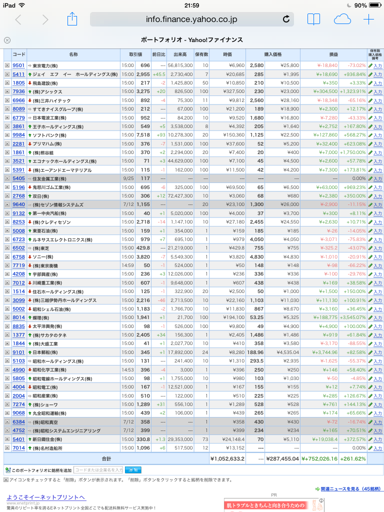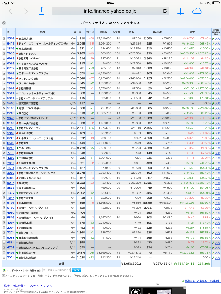 豊嶋康子ミニ投資【合計】___¥1,051,902(+261.44%)