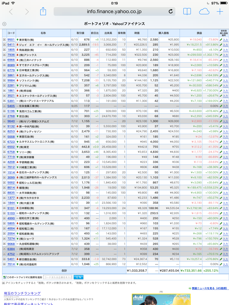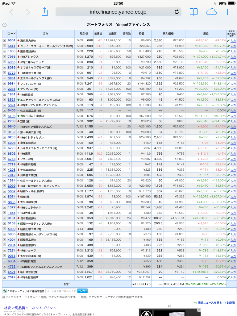 豊嶋康子ミニ投資【合計】___¥1,039,175(+257.25%)